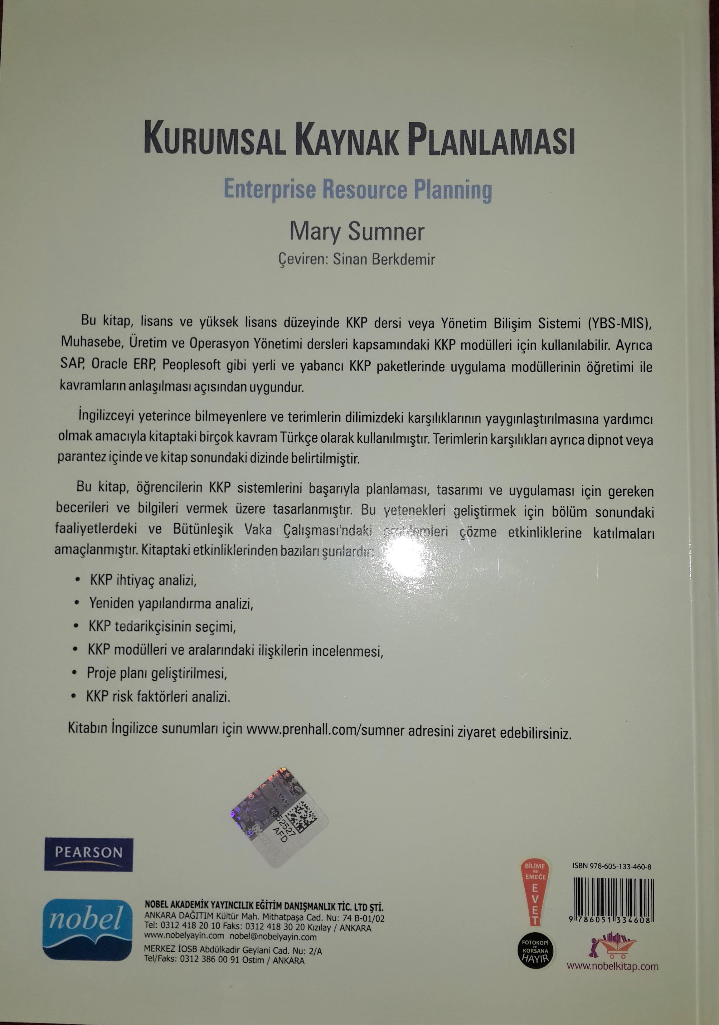 Bu kitap, lisans ve yüksek lisans düzeyinde KKP dersi veya Yönetim Bilişim Sistemi (YBS-MIS), Muhasebe, Üretim ve Operasyon Yönetimi dersleri kapsamındaki KKP modülleri için kullanılabilir. Ayrıca SAP, Oracle ERP, Peoplesoft gibi yerli ve yabancı KKP paketlerinde uygulama modüllerinin öğretimi ile kavramların anlaşılması açısından uygundur.